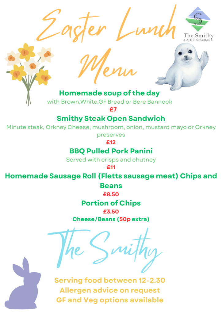 If you would like to hold private functions or book a table, please get in touch at Smithy@shapinsay@shapinsay.org.uk or call 01856 711243.